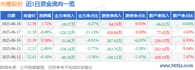 6月18日的资金流向数据方面,主力资金净流出18.57万元,占总成交额0.27%,游资资金净流入64.59万元,占总成交额0.93%,散户资金净流出46.02万元,占总成交额0.66%。